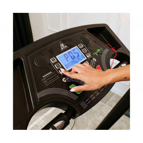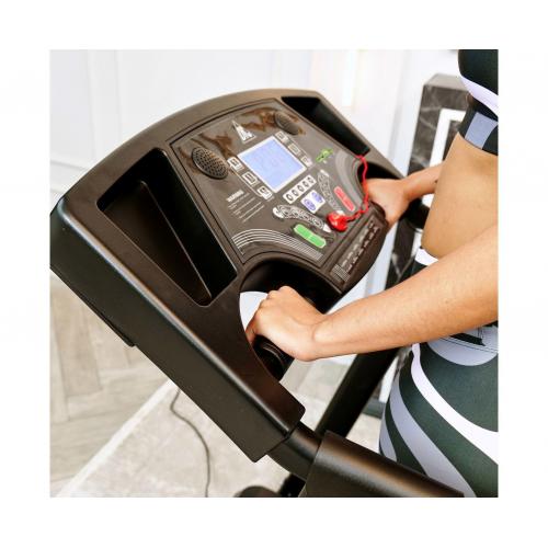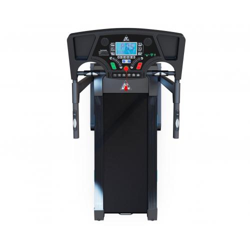 DFC SIENTA T625 имеет двигатель постоянного тока мощностью 2.5 л.с. Угол наклона бегового полотна изменяется с помощью дополнительного электромотора. Встроенные динамики звуковой системы и возможность подключения дополнительных устройств через разъемы MP3 и USB помогут провести тренировку под любимую мелодию. Два комплекта встроенных в поручни датчиков позволят следить за частотой сердечных сокращений. Такие датчики имеют определенную погрешность. Для точности показаний рекомендуем приобрести нагрудный пояс с монитором в форме часов DFC W117.
