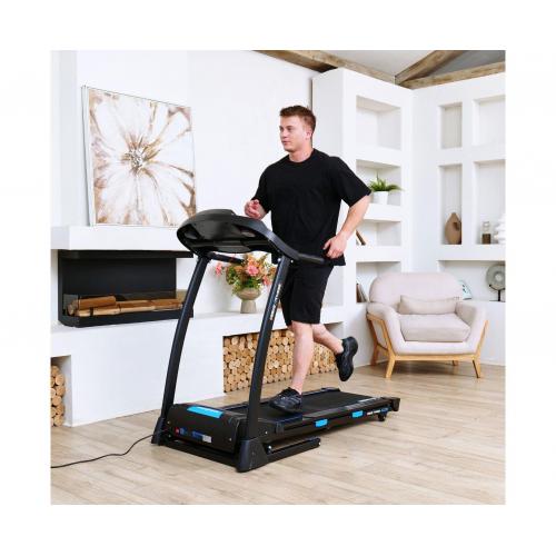 - Беговое полотно размером 120 x 41 см и двигатель мощностью 2 л.с. обеспечивают комфорт и безопасность тренировок. Скорость дорожки может быть установлена в диапазоне от 1 до 14 км/ч, а угол наклона регулируется электронно в пределах от 0 до 15 градусов.
